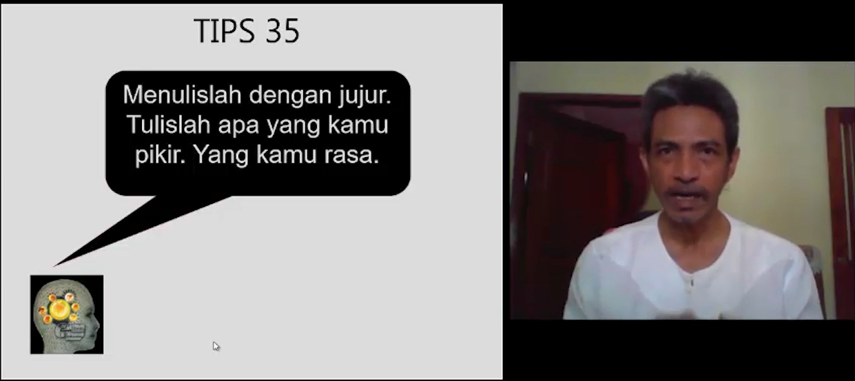 • Tips 35: Menulislah dengan jujur. Tulislah apa yang kamu pikir, yang kamu rasa
